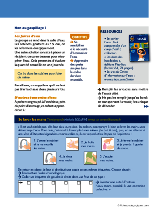 Se sensibiliser à l'utilisation de l'eau au quotidien. Découvrir une propriété de l'eau: poussée d'Archimède. Exercer le sens du toucher.