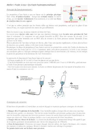 Il permettra aux élèves de comprendre le fonctionnement de la fusée à eau et de mettre en place une démarche expérimentale pour en construire une avec un minimum de matériel très simple comme une bouteille et une pompe à vélo.
