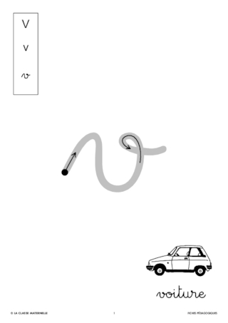 Ce fichier offre la possibilité aux élèves de GS voire de CP d'apprendre à tracer en cursive la lettre V. Pour cela plusieurs exercices d'entraînement sont proposés : dans un premier temps repasser sur la lettre en gris avec points de départ du tracé et sens indiqués. Deuxième série où la lettre doit être écrite sans ligne d'appui puis sur des réglures type double ligne. Enfin dans la dernière partie, la lettre ainsi que deux mots proposés sont à écrire sur des lignages type Séyès.