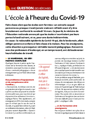 En cause : la redoutable épidémie du Covid-19 qui, dès le lendemain, allait obliger parents et enfants à faire classe à la maison. Pour les enseignants, cette situation a provoqué un véritable tsunami pédagogique. Rencontre avec des professeurs d’écoles qui, en un temps record, ont dû bouleverser leurs habitudes de travail.