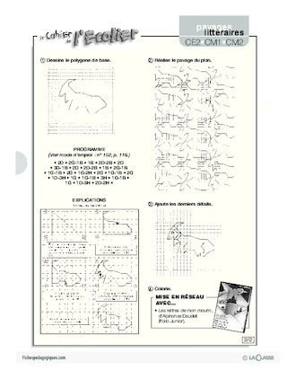 La chèvre de M. Seguin / Pavages Ajouter aux favoris CE2 CM1 CM2 Ressource de mathématiques pour les niveaux CE2, CM1 et CM2 dans le sujet géométrie Description Voici un nouveau pavage inspiré de "La chèvre de M. Seguin" d'Alphonse Daudet, qui permet de s'exercer aux joies de la géométrie. Mots-clés pavage chèvre Seguin Daudet géométrie figure polygone Télécharger Ressources 2 pages / 1 crédit Partagez cette fiche