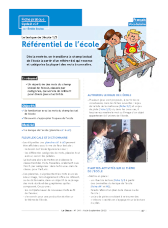 C'est ainsi que ce dossier propose, à partir d'un référentiel des mots de l'école à afficher, deux jeux à mettre en place dès la rentrée pour en favoriser la mémorisation.