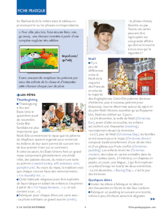 L’anglais n’est pas directement au programme de maternelle, mais c’est la langue la plus maîtrisée par les enseignants et la plus utile dans le monde actuel. Les jeunes élèves qui commencent à l’étudier prennent un peu d’avance et apprécient ! Voici une proposition d’activités par périodes (de vacances à vacances), pour leur apprendre peu, mais bien ! Dans ce numéro, la période 2 (novembre-décembre).
