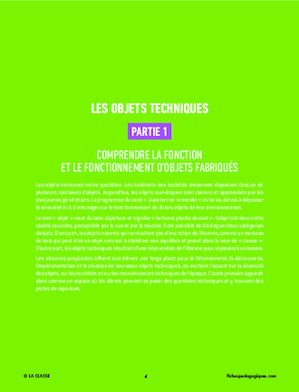 Le domaine « Questionner le monde » du cycle 2 est un vaste champ disciplinaire de l'école primaire. Ce troisième et dernier chapitre est consacré aux objets techniques. Les enfants posent souvent des questions sur le fonctionnement des objets qui les entourent : une serrure, une cafetière, un téléphone... Une bonne occasion pour entraîner vos élèves à émettre des hypothèses sur la fonction et le fonctionnement de ces objets du quotidien.