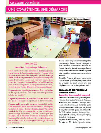 Le travail autour de la compétence « espace » a beaucoup d’importance en maternelle car il permet aux enfants d’acquérir une série de « repères que chacun élabore, par l'action et le langage, à partir de son propre corps [...] » (programme 2020). Voici comment Christophe Baudot organise cet apprentissage.