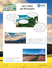 Avec cette fiche, les élèves de Cycle 2 (CP – CE1 – CE2) peuvent découvrir plusieurs types de paysages (montagne, campagne, ville,...