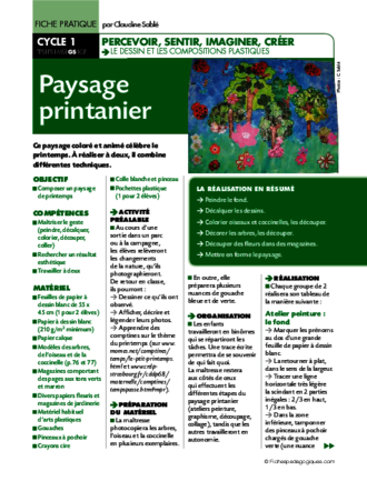 Ce paysage coloré et animé célèbre le printemps. A réaliser à deux, il combine différentes techniques.