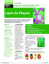 Figure prolifique à Pâques, le lapin, ici en peinture et papier collé, nous apporte des oeufs dont il a lui-même décoré l'emballage...